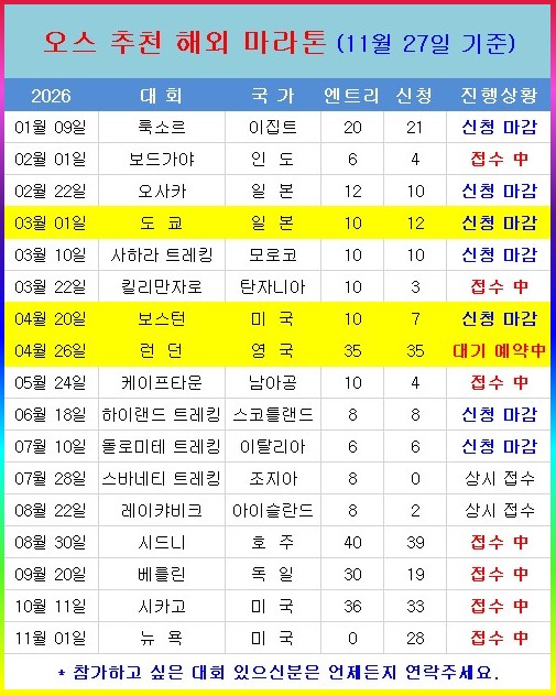 2026 하반기 마라톤 추첨 및 빠른기록 등록..