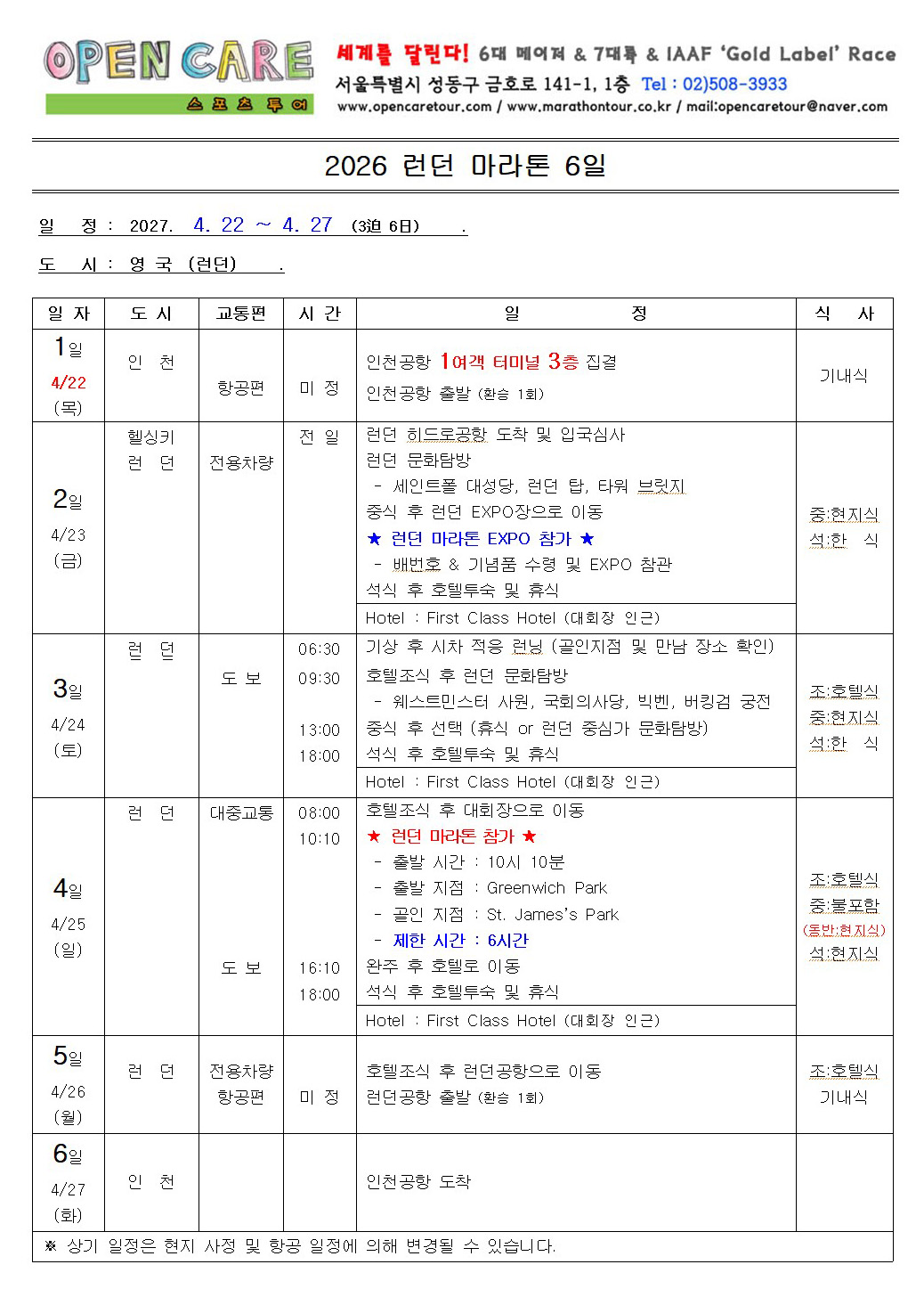 런던 마라톤의 예약금은 1인 200만원이며, 대회 등록전 취소시 전액 환불됩니다.